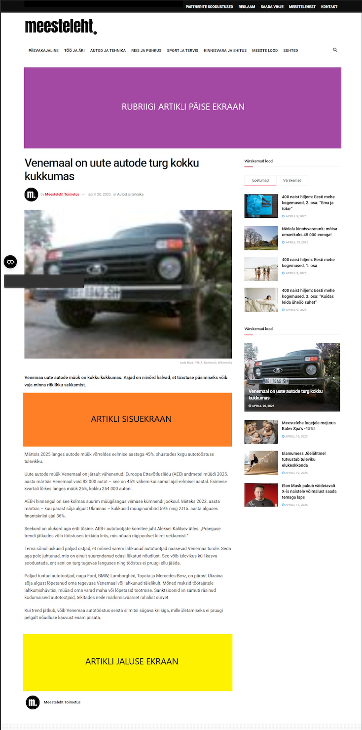 Võimalus enda ettevõtte logo või soodustust reklaamida teie valitud rubriigi lehel, lehe päises ja samuti ka rubriigi artikli lehel, artikli päises (seega kokku 2 ekraani).