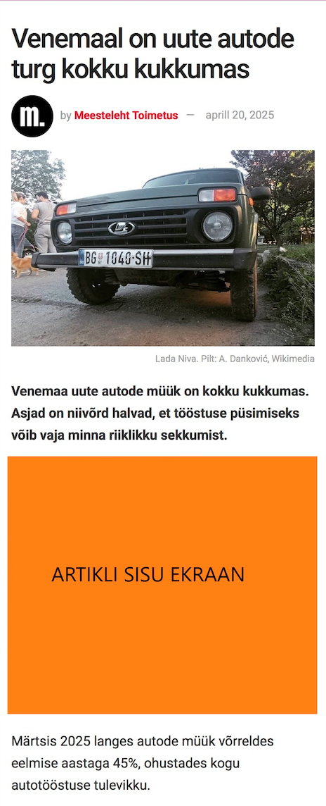 Võimalus enda ettevõtte logo või soodustust reklaamida teie valitud rubriigi lehel, artiklite vahel ja samuti ka rubriigi artikli lehel, teksti vahel (seega kokku 2 ekraani).